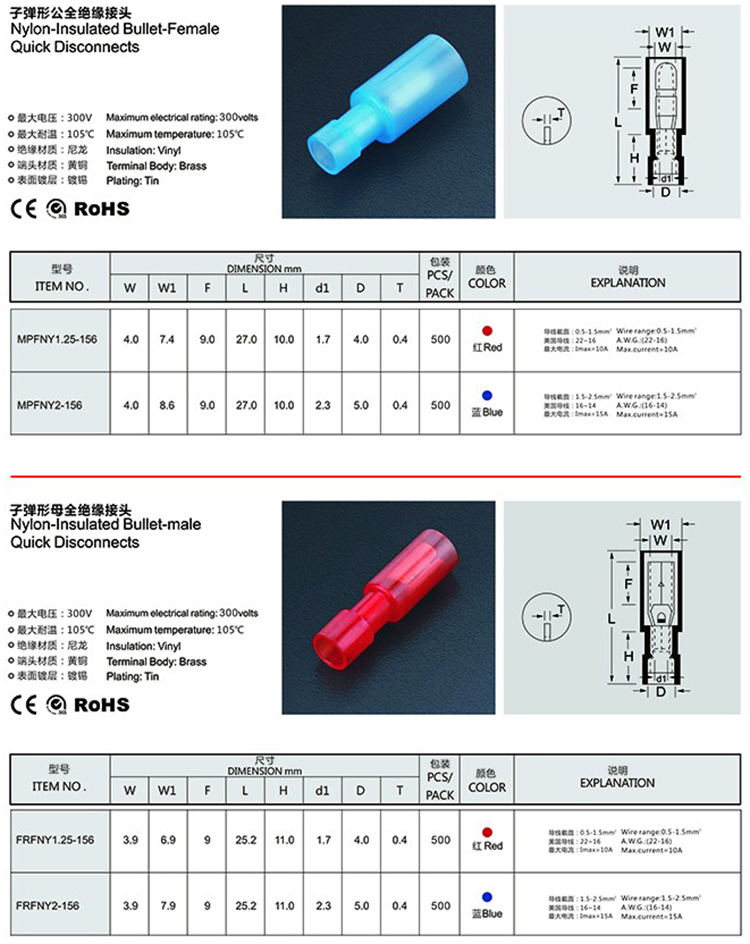 子彈形公、母全絕緣接頭(尼龍)